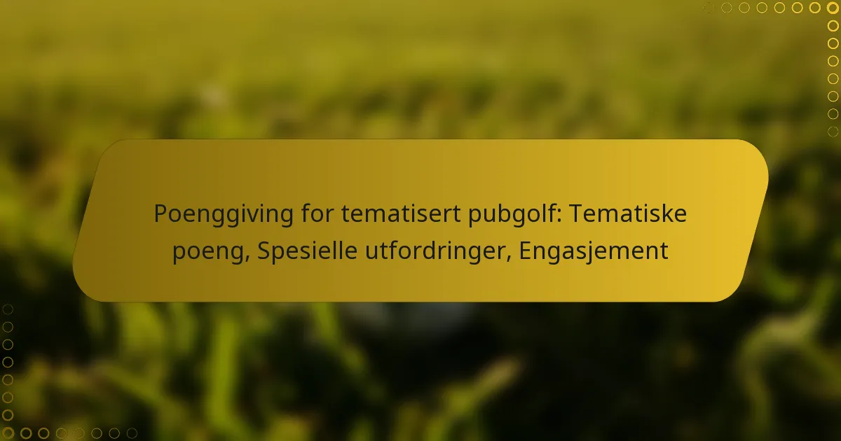 Tematiske variasjoner i poeng kan forbedre den totale opplevelsen av pubgolf. Ulike temaer kan introdusere unike aktiviteter eller utfordringer som påvirker poengfordelingen. For eksempel kan en sports-tematisert pubgolf inkludere fysiske utfordringer, mens en film-tematisert versjon kan involvere trivia-spørsmål relatert til filmer.